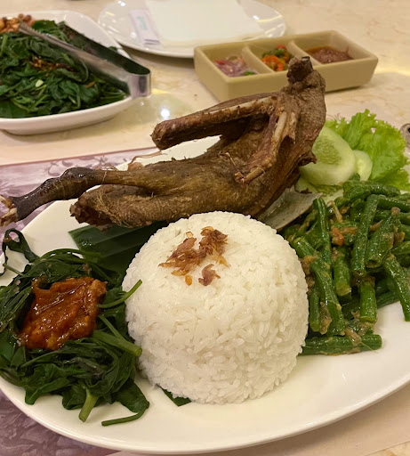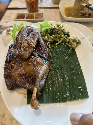Read moreTempatnya di Amboja, naik dua kali. Konsep Amboja ini kaya semi-open air(?) gitu? Parkirnya outdoor dan untuk kursi roda bisa pakai lift ya. Pesan Crispy Duck dan Plecing Kangkung. Crispy Ducknya ukuran setengah ekor. Plecing Kangkung bisa minta pisah sambal buat yang gak suka. Emang ini tipe2 makan enak sih buat sekeluarga. Pelayanannya sangat bagus, saya sampe lupa kalo harganya mahal. Ambiencenya damai banget kaya di Bali. Bener2 dapet konsep lokal yang elegan. Senang sekali. Sepertinya konsepnya dia emang resto buat ngumpul gitu ya. Jadi ga ada wifi dsb. Gak WFC (siapa juga yg mau WFC sambil makan bebek hahahaha) Salut. Semoga bisa dipertahankan ya saya akan rekomendasiin tante/bude saya kalo mau ketemuan...