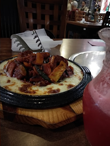 Pork Cheese Dwaeji Gochujang Barbecue for 268 K IDR ++ and a small pitcher of watermelon soju for 60 K IDR ++