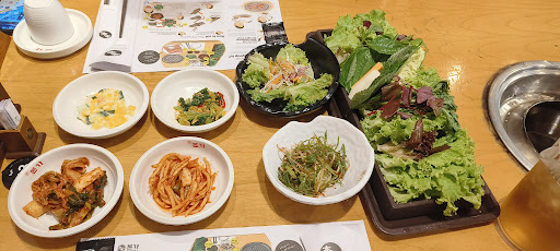 You start off with a bunch of complimentary dishes ranging from kimchi to a platter of lettuce leaves and greenery. By itself it isn't too appealing but after ordering two meat dishes (which were around the 200 thousand mark) I was super pleased about how this turned out. The combo of veggies and meat was great and I would not have liked it any better.