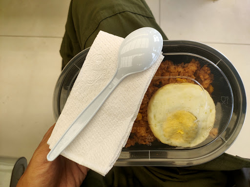Read morehiyakAllah pelis jangan beli nasi goreng nya either yg ayam 25k atau telur 15k..WHY? sini gw jelasin Rasa nasi goreng ini bnr2 diluar dari prediksi, seumur hidup makan nasgor gapernah ada yg fail mulai dari pinggiran sampe kelas atas selalu oke tapi jujur ini nasi goreng terSALAH seumur hidup gue. Rasa yg bnr2 gue inget itu ada rasa amis dari ikan termasuk baunya juga dan zonk, bukan nasi goreng kecap bukan juga nasi goreng hongkong gatau deh ini campuran mana⦠Untuk ayam oke enak kita dpt ayam paha bawah utuh rasanya enak, juicy juga. kesimpulan: mending beli paket nasi ayam/burger kentang aja. NOTES: HINDARI NASI GORENG....