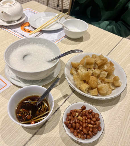 We got the plain congee and cakwe to start, some protein dishes and a veggie dish. The food took some time so be patient! The sapo tofu was great. The green beans and beef was spicy and the salted egg squid had really good flavor. Get the Chinese tea - itâs wonderful.