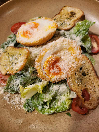 For the caesar salad, they served it with something thats similar to a scotch egg. I mean, nothing spectacular. They used thigh for their grilled chicken so its juicy.