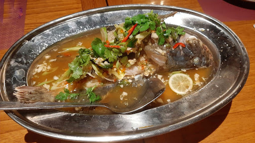 We had dinner here recently after watching movie at close-by cinema. We ordered three main dishes, i.e. beef green curry, green mango salad with fried catfish and stir-fried seafood with nam-prik sauce. We also ordered miang-karm / betel leaves appetizer and cold bua-loy as dessert item. All dishes were authentic and taste nice, except the stir-fried seafood that we thought a bit lacking of the "smokey" fragrant of Thai stir-fry items. The highlights were the miang-karm appetizer and the green mango salad since they're really taste authentic Thai dishes. The dessert item was also quite good.