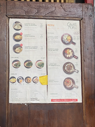 Read moreThe space is very narrow, but I find it fitting with the theme of a local chinatown stall. Loved the vibe. The posters, calendars, lanterns, steep stairs, modest chairs and tables. We were seated outside, so there was more circulating air and we got to watch the life of the street. I ordered claypot siram telur mentah sapi (30k). My initial bite into it was "such weird combination of texture". But as I scoop more spoonful to my mouth the taste and texture grew in me. Maybe because the toppings and rice has soften up as they soak in the slimy broth. I loved it. I get why it's comforting. Especially after I added the condiments (white pepper, soy sauce, chili oil). The chili oil is top notch! My drink was a humble unsweetened iced tea for just 5k and it's refillable. I don't know much about teas, the taste is different than your usual street food name brand black tea. Maybe it's green tea but I could be wrong. It came as soon as we were seated. Perfect after a long midday walk. My only problem is that they only accept cashless and I had no cell coverage trying to...