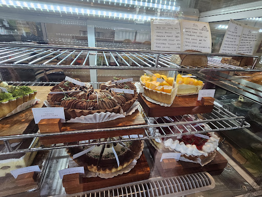 Tables are many, indoor space actually has many tables but it is fully occupied, very crowded and noisy, so sad cause the place itself is comfy to work and read, definitely don't come here to sit idly or work if it is crowded. Interior are simple but looks aesthetic, clean and comfy. Many variety of tarts and sweet that they offer, and also serves main dish such as pasta. We tried the mango tart (around IDR 45k ish) , refreshing indeed. Tart base crispy delicious, balance the fresh cream and sweet of mango nicely. Most of the tart here are based of fresh cream with different fruits add on it.