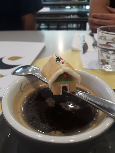 When our drink came, i just surprised when i saw the biscuits for the coffee, a mini Gingerbread house, such details! But they forgot to serve the sugar haha, until we ask,