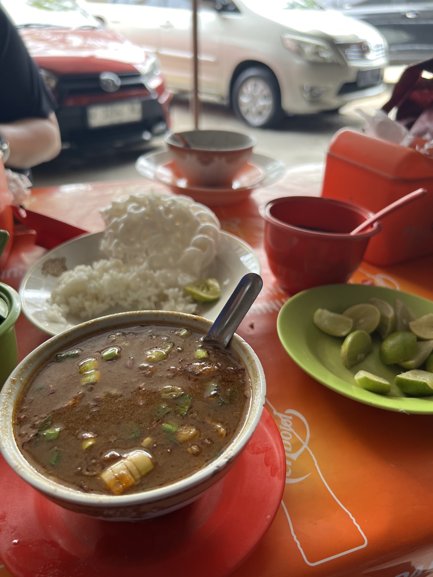 Read moreBest coto makassar you can have near Soekarno Hatta International Airport. Usually accompanied by buras and kupat for the carbs. If you're lucky, you can get es pisang ijo, usually they are sold out very fast.
