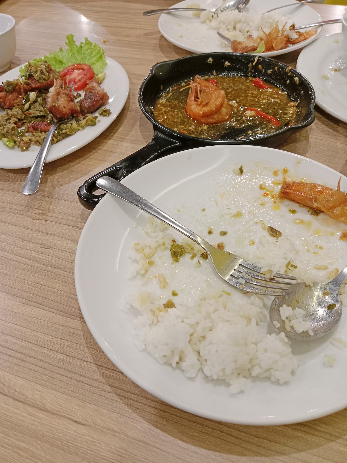 Sebelum nya maaf banget. Yaa emang si gak setiap hari makan D'Cost di Citraland cuman ini untuk yang ketiga kalinya makan disini sekecewa ini. Harapannya ya pulang dengan kenyang tapi ini engga kenyang sama sekali 🙏🏻. Malah pulang dengan super duper bete banget. Yang pertama it's oke di meja gak di sediakan piring mungkin lagi habis ramai jadi ya it's oke ga apa apa bisa ambil sendiri piring dan garpu nya tidak dengan sendok karna mungkin habis dan belum di cuci, karna biasanya kalau stiap datang di meja itu sudah ada tissue piring sendok dan garpu, mungkin habis ramai jadi mungkin tidak di seat-up lagi ga apa apa. Oke selanjutnya yang kedua datang esteh manis oke masih aman, selang berapa menit datang es campur menurut sya es campur nya kurang enak dibagian buah alpukat nya kaya aneh gtu ya rasanya kya gmna ya ada grenjel-grenjel kecil keras kaya kulit atau apa gitu saya gk tau bahasany ya intinya kurang enak aja gtu ya mungkin bisa diperbaiki lagi🙏🏻. Lanjut datang udang saus padang dan kangkung bawang putih , untk yg udang saus padang nya aman enak, nah kangkung bawang putih nya dateng gk ada cincangan bawang putih sama sekali gk ada rasa terus sya panggil waiter/server yang ada dstu buat tanya "mba kangkung bawang putih biasanya ada cincangan bawang putih nya kok ini ga ada" mba nya jawab "oh maaf ka boleh saya angkat dlu kak, mau saya tanyain dlu ke blkng" Selang brpa menit di bwa ke belakang mungkin ke kitchen yaa, oke dtng lagi kangkung bawang putih nya ada cincangan bawang putih nya cuman pas datang lagi itu kaya cuman di panasin terus di kasih cincangan bawang putih nya oke lahhh gpp. Habis tu nasi putih dateng oke dsni msih aman. Lanjut sya minta sendok manggil 2 server/waiter cuman di ksih jwbn "sebentar ya kak", tapi sebentar nya itu berapa lama?? yang ngomong sbntr aja malah masih nge-dusting meja?? mungkin masih baru saya minta sendok tapi lumayan lama nunggu nya, masa iya? saya makan pake garpu doang kn gamungkin yaa. Ga lama dtng sendok di ksih sma waiter ka² cowo intinya sya pikir dtng sendok beserta tissue nya tpi ini engga garpu ya ama sendok, sya pikir gpp mungkin lupa yaudah, habis itu terakhir dan paling terakhir ayam cabe ijo saya pernah pesen ini di sebelum sebelum nya itu enak, garing berasa bumbunya gak asam dan gak kecut, ini pesen yang ayam cabe ijo pas dateng saya pikir enak lahh inii karna udah biasa pesen itu krna sya yakin pasti masih enak rasanya ga berubah, nah hari ini dan terakhir makan D'cost citraland ayam cabe ijo nya mengecewakan dari segi rasa yang pertama asem pas pertama digigit terus di iringin kecut pokony dsitu langsung badmood, ga nerusin makan dan gak habis, sya gak tau emang dari rempah rempah atau dari ayam nya saya gak tau, intinya tolong lebih bisa di perbaiki lagi ya...