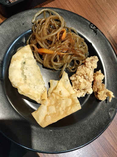 semua gorengan fresh. Ada ayam goreng manis gitu anakku suka banget, uda kawatir nih ajak bocil krn makannya susah dan milih2, ternyata cocok sm gorengannya, walau grillnya bocil ga mau. Japchae nya suprise banget pake soun korea dan enak(kualitas banget) Kimchi boleh ambil sepuasnya dan tipe kimchi homemade yg enak. Selada, bawang putih, Bombay, cabe, saos sepuasnya. Ada daging matang tadi daging cabe ijo, enaaakkkkkk. Buat yg ajak ortu yg ga terlalu suka taste koreanya, tenang pake daging ini pasti cocok. Indonesia banget. Enak dimakan pake nasi anget2. Ada dessert puding, kacang ijo dan ketan item., ga coba krn ud full,puding aja anak2 yg makan. Minuman Ada teh tawar dan jeruk manis free flow.