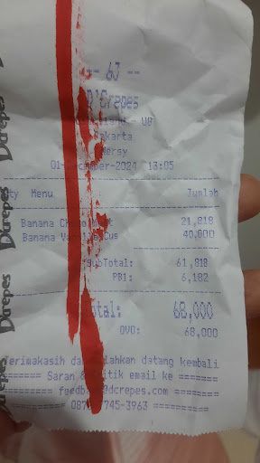 Read moreSaya tgl 12/07/25 Saya memesan de creps 4 item,beef burger,tuna pizza,banana vanilla custard dan ice vanilla choco transaksi saya jam stngah 9 malam,sampai rumah pesanan saya ada yg salah diberikan oleh karyawannya,dalamya seperti ada oreo vanilla custard padahal pesanan saya tuna pizza;Untuk mengurangi kekecewaan anak saya kembali lagi ke counter de creps esok malamnya saya komplain skalian mesan lagi tuna pizza walaupun karyawatide creps hanya memberi jawaban kata maaf aja dan salah satu karywati juga ada menyeletuk ibu pesanan berapa'cumaa satua aja saya jawab maaf mba saya kmren beli 4 item.saya tetap mesen tuna pizza lagi dan pesanan saya di olah saya terus mengingatkan mereka tuna pizza ya mba jangan salah lagi nanti anak saya minta datang kembali ke de creps karena salah pesanan namanya juga anak2,saya hari itu pesanan 1 saya anak saya suka, saya pesan lagi untuk bawa pulang.pesanan saya dibuat yang ke 2 trakhir saya terima pesanan karyawati atas nama alfi anak saya aja ingat nama itu ngasih ultimatum ke saya:ibu kalau ada transaksi lagi jangan bilang tuna pizza ya..jangan salah lagi,kenapa mba itu yang ngasih ultimatum ke saya kalian team de creps aja pesanan saya cuma di ganti kata maaf.wajar dong kalau saya ingatkan tlong etika dan cara manggil saya custumer bukan teman.walaupun saya coba ramah ke mba di hargai,malah mba alfi minta di perhatikan karena takut katanya kalau malam ada leadernya,untuk mba alfi tau rasanya ditegor tuh de creps aja rasanya hambar saya dan suami sapai gondok d rumah.pelayanan kalian...