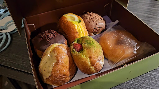 Read moreI saw this place on social media, and was also curious by the name of the shop and the flavours I decided to visit and try. Arrived past 2 in the afternoon and there was a short queue. While I was queuing I was told there were only 3 flavours left and the next batch would be 5pm. The staff asked me to come back at 5 if I wanted to try more flavours, and I said I stay quite far and I didn't want to wait. She suggested that I could order and pay and get a delivery to collect the donuts later. I thought it was a good idea so I took her suggestion. A little disappointed the shop was so simple there isn't much to explore and there were no seats for dine in. So finally waited till 5 to get a gojek to pick up. Took an hour cause 3 picked up the job and canceled upon arrival, the 4th one managed to complete the job. I tried and I would say its okay, nothing so special to rave about. Just some comments on the different flavours, the pistachio taste was mild and too watery, eating it was quite a mess. I quite liked the earl grey with chocolate, didn't know the combination could taste so good. The other flavours were average. Got a savoury one, the truffle and garlic butter. The truffle smell was strong and I liked it, the filling was quite heavy. I had a but and I really felt I was biting into a slab of butter. It was also the only donut I just ditched it after having a bite. I don't think it's expensive, the flavours are nothing out of the world but the earl grey and chocolate is pretty interesting to try. Would be better to arrive at times where the flavours are all available so it won't be such an inconvenience to wait or to have to get a...