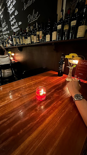 The bar has a big variety of cocktails and drinks like Martini rosso or Aperol. There are also Italian wines available like Lambrusco, which is rare to find in Jakarta.