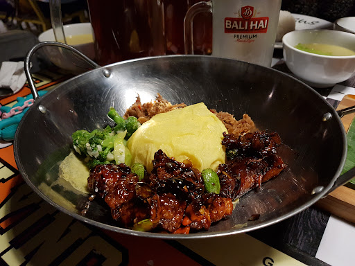 Read moreIf u r a pork lover and try to find heaven, then u must try for this restaurant. It is located in Sunter Agung Tengah & sister company with Pig Hunter. The parking lot is quite huge and the place is also big enough for meeting, gathering or party. They have indoor (with seat around 5 tables) with AC and quite big outdoor (no AC with seat around 12 tables). U can play ludo, ular tangga, halma using the table (quite creative). For the food, u need to order pork knuckle (their favourite menu) for IDR170k++. The skin is so crispy with fat layering and after the third layer, u can find the meat. The second one is pork ribs for IDR170k++ or for American one IDR160k++. The taste of the meat is nice and soft, u can pick up honey sauce, BBQ sauce or black pepper sauce. For the sauce, combination quite limited. If u go there with family or group, u can order nasi acak (mixed rice), consists of rice fo2r 4 - 5 peoples, crispy pork, pork satay, lawar, sambal matah, fried noodle for IDR420k++ and u can share it. Or u can choose the combination of pork platter for IDR210k++ (this one also delicious). Last thing we ordered sei babi rica for IDR65k++ (small size & no box for sharing). For the drinks, u can order beer (any kinds of beer such as Bintang, Raddler, Heineken, San Miguel). However need to have either pitcher or grabbing 3 big bottles with ice bucket. Really like their sei babi rica with sambal matah (u can hear 'kriuk' sound when eating it, so nice. U need to try here to have the sensation of eating pork with lots of pork food combination) 😉😉😉. The server is good, however due to limitation in quantity then their service...