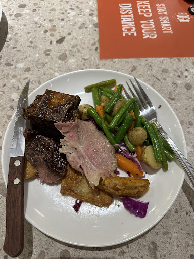 things to be appreciated is the staff serve the well done meat when requested. this came in separate plate, sliced, hot-warm, and has better taste than other meat because they did seasoned it separately. we also enjoy their chocolate pudding and garden salad.