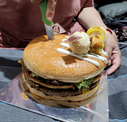 Read morePesan 2 jam sebelum take-away karena lokasi gerai (Menteng Atas) dekat dengan Rasuna Said dan sudah ready sesuai waktu pengambilan (17.30). Pesan melalui WA dan pembayaran melalui transfer. jadi begitu datang tinggal angkut. Admin fast response dan informatif jika memang ada promo yang sedang "On". Excellent customer service! Pesan B'day monster varian Southwest Turkey 20cm, bumbunya mantep! nda pedas..ayamnya enak..ada patty dagingnya walau agak kering menurut kami..namun masih bisa dikonsumsi manula dan 2 anak usia 8 dan 10 tahun. Burger dikonsumsi 4 orang (2 anak, 2 dewasa), sudah kenyang banget. mungkin standarnya dibagi 5 orang ^.^ Packaging aman, buat dicantolin di motor matic. Diberikan pita dan kartu ucapan, pisau kue dan lilin. Oh ya pas datang, kami melihat saat itu cuma ada 2 tabel kecil dan outlet sampingan dengan barbershop (tanpa pembatas tembok, jadi bisa melongok ke warung sebelah). dan sy baca di reviu yang lain kalau pesan go-show nunggunya 45-60 menit dan saya tanya reception order juga begitu infonya. Jadi, bagi yang ngga sabaran, hindari go-show order deh..coz waiting isn't my thing at all. Namun overall order kali ini,...