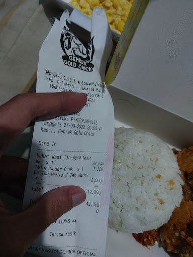 Read moreLagi laper-lapernya ngebayangin makan ayam geprek enak kali ya, sengaja aku suruh suami beli di gold chik karna paling deket dari rumah ya Allah nyesel se nyesel" nya gak lagi lagi kapok banget anjir 😭😭😭 Ayam nya adem gak fresh dan kaya ayam kemaren terus nasinya juga adem udah gitu benyek lembek kaya bubur tapi masih ada beras-beras nya gitu kaya masih mentah alhasil gue buang dah tuh makanan Semoga gak bangkrut dah tu resto begitu bukannya nyari pelanggan ini mah pelanggan malah pada...