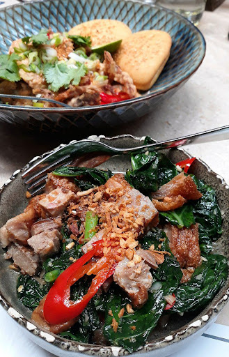 The crispy pork belly with the fresh salad really stands out because it's a very balanced dish. The acidity in the salad really helps reduce the richness of the pork belly. If anything, you have to eat it quickly or the skin could be chewy/tough when cold. The duck IS super crispy, the rice is super good with the kecombrang added to it. It is again a very balanced dish. I also ordered a cocktail but it's nothing special --maybe I should try a different one.