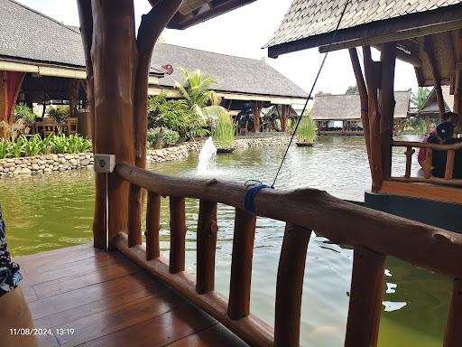 Read moreFirst time eating in this place to celebrate my daughter first birthday. The place is huge and waiter will guide you to your table,. There are many choice depends on how many person you are. At the center there is a place for ceremony or table for up to 4 persons. Than a canoe boat shape place surrounded by the pond, about 4 - 6 persons. Than a gazebo shape place by the pond, there is an access that you can sit close enough to the water for feading the fishes. you can get the fish food close to the cashier in entrance or at your table place. You have to pay by the way for a bag of fish food about 250gr or 500gr. this place is for about 6 - 8 persons, can be joined if you have more people coming with you. They are still short staffed i guest or still need new method for call the waiter. They have this unique indonesian herritage of communication called 'pentungan' to call the waiters, but for my experience the sound still not loud enough (or maybe i'm just feel bad to hit it so hard) to get the attention or sometimes kids are playing with it so can be miss understood. For the food is good for my taste and clean enough. But still there is a fly come flying around. The parking lot is so huges, you can fit a lot of car out there.. I guess this place will not waste your time, try sometimes to have a special lunch or dinner here with...