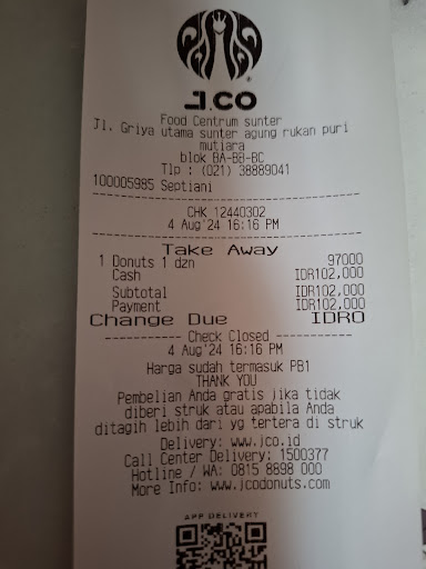 Hallo... Selamat Sore J.CO Sore ini saya dapat pelayanan yg sangat buruk dari J.Co Food Centrum Sunter biasanya ramah dan murah senyum , serta menginformasikan promo2 yang ada tapi sore ini saya dilayani oleh Kak Septi. dari awal transaksi "TIDAK SENYUM sampai SELESAI" bahkan saya tanya , ada rasa blue berry , dijawab dengan muka masam (NGAK ADA) setelah selesai transaksi pun hingga struk tercetak , tidak mengucapkan TERIMA KASIH , Kak Septi baru mengucapkan terima kasih setelah saya diam ditempat sambil merasa aneh , karena dia langsung ke customer berikutnya baru dia ucapkan terima kasih , padahal kondisi customer tidak ramai. biasanya J.Co Sunter sangat ramah dan murah senyum , bahkan disaat promo buy 1 get 1 free yang antrinya sampai panjang luar biasa (pelayanannya tetap bagus) demikian ulasan yang saya berikan , mohon maaf jika ada hal yg kurang baik yg saya ulaskan disini , saya hanya mengulas apa yg saya alami sebagai customer...
