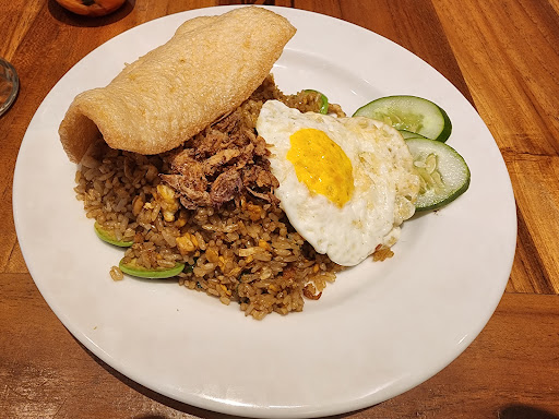 The asinan was the winner; it was fresh and seasoned just right, a joy to eat in every bite, and perfect for veggie lovers. The asinan came with a giant krupuk, which was fun to snack on when dipped in the sauce. The rawon was also on point, with tender chunks of beef in delectable soup, paired well with emping chips.