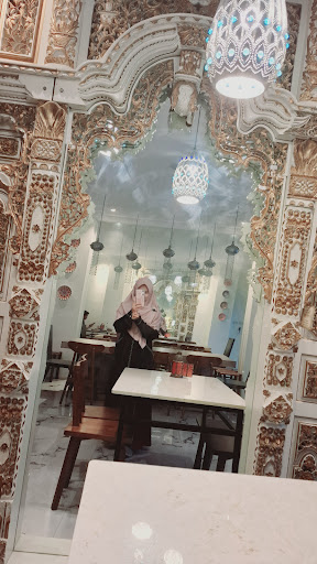 Ini detail reviewnya Tempatnya strategis ada lahan parkir Terdiri dari 4 lantai, lantai 1 semi outdoor, lantai 2 indoor ala meeting room + pake ac. Lantai 3 nya ala² lesehan + kipas angin. Lantai 4 nya rooftop. Kalo malem bagus banget d lantai 4 nya. Nuansa arab instagramable