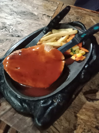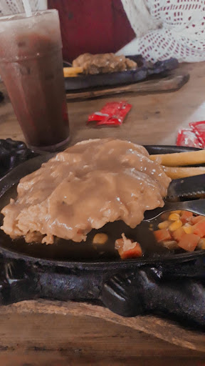 Kedai steak ini terletak di daerah Pulo Gebang. Tempatnya tidak terlalu besar, jadi jika ramai pengunjung maka kita harus siap untuk antri. Kebetulan saat saya datang sudah tidak terlalu ramai dan banyak menu yang sudah habis. Saya memesan steak ayam dengan saus barbeque. Porsi single-nya lumayan besar menurut saya. Daging ayamnya juga tebal. Balutan tepungnya tidak keras saat dimakan. Rasa bumbu barbeque-nya lumayan lah.. untuk saya pribadi sih kurang suka karena saya suka steak dengan brown sauce. Ini opini saya pribadi karena ada orang yang justru suka dengan saus barbeque. Tapi untuk porsi steak secara keseluruhan memang diluar ekpektasi saya. Saya pikir porsinya kecil karena dengan harga 15.000 biasanya porsinya kecil, tapi ternyata tidak seperti yang saya bayangkan. Untuk minumannya saya memesan Chocolate, jangan berekspetasi terlalu tinggi karena rasanya sesuai harganya. Untuk harga menunya terbilang murah. Pantas saja selalu ramai dan cepat habis. Untuk kebersihannya perlu diperhatikan karena tempat kita makan dekat dengan tempat sampah, jadi agak ada bau² sampah gitu.. buat kalian yang tidak mementingkan masalah kebersihan mungkin tidak akan terganggu dengan bau²an. Pelayanannya ramah dan lumayan cepat menurut saya karena saat itu tidak terlalu ramai. Tempat ini bisa jadi rekomendasi buat kalian yang ingin makan steak dengan harga...