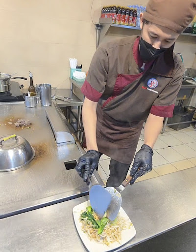 Dapurnya terlihat sedikit kotor, mgkn dgn kondisi pandemik dan pengurangan tenaga kerja, semua dilakuan sendirian oleh sang koki, dr menerima orderan, memasak, menyajikan sampai menerima pembayaran. Tentunya ketika tutup toko kemungkinan besar beberes pun dilakukannya sendiri.