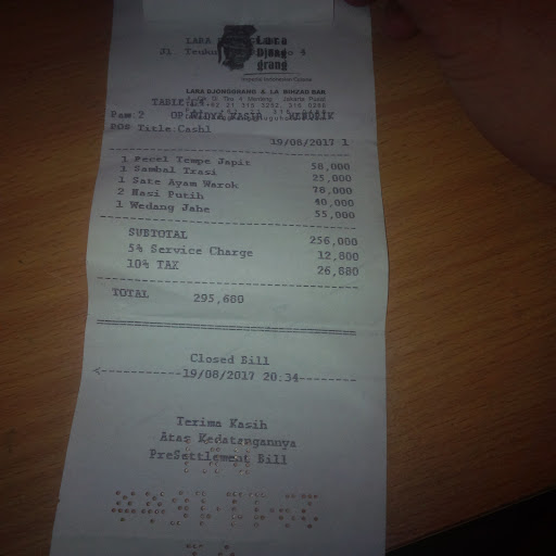 Read moreAuthentic Indonesian dining experience in historical and culturally rich ornamented rooms! It was my second day back in Jakarta longing for a traditional Indonesian food and stumbled upon Lara Djonggrang in Menteng area and wasn’t disappointed.