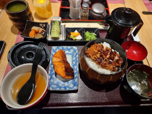 As the name implies, unagi is the star here, and we dove into a variety of bento sets. We dove into the bento sets, an array of culinary delights presented on beautiful trays. My feast featured melt-in-your-mouth eel alongside tender ika (squid), while my friend's opted for a beef-unagi duet. Salmon, both solo and partnered with eel, rounded out the table's choices. Each set boasted fresh wasabi, ready for us to grate to our own personal fire.