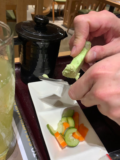 The broth had a light taste, similar to miso soup, and they served it in a teapot that kept it warm until I finished my meal. Well done on that front.