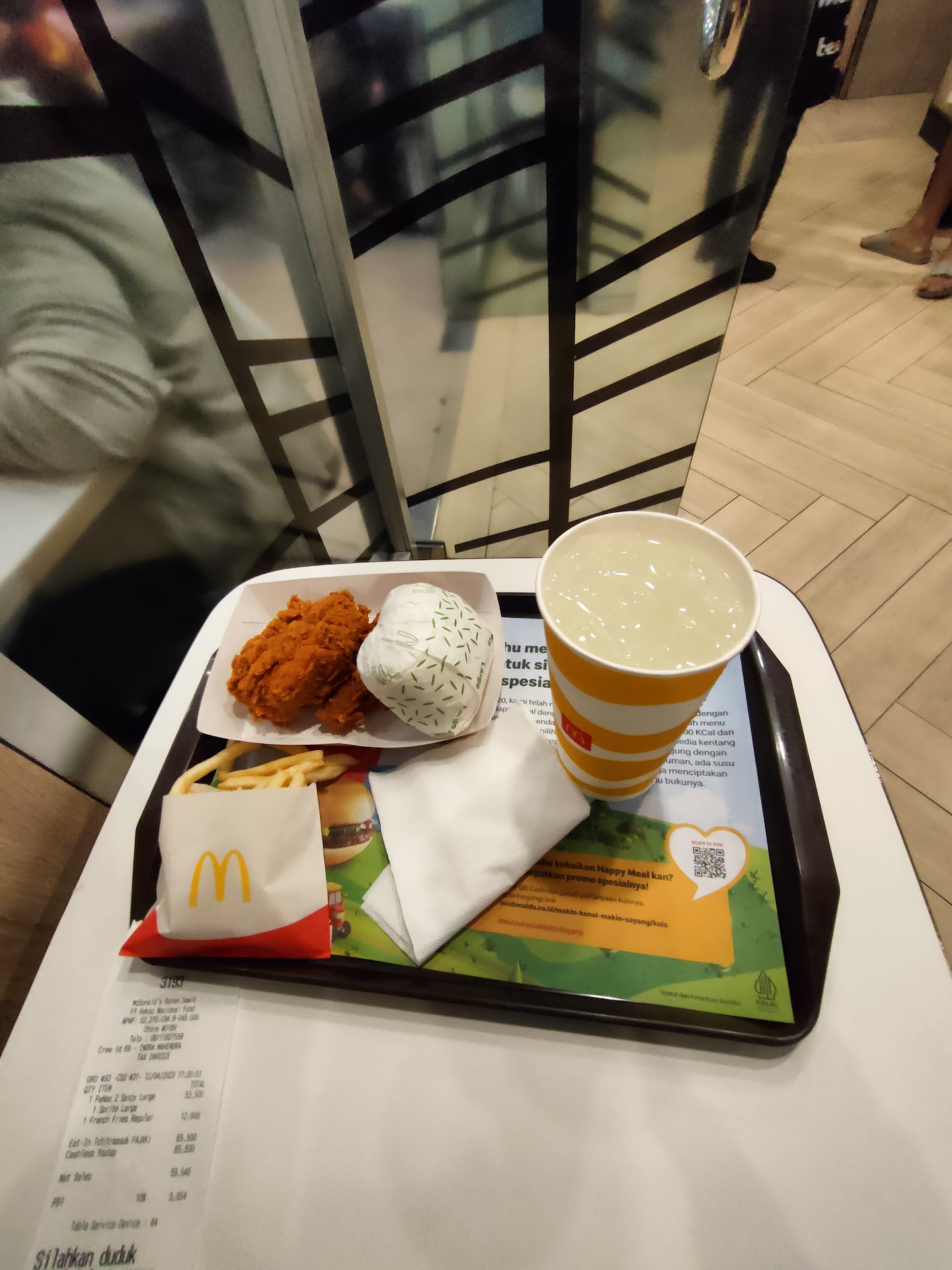Saya coba ngomong ke mas2 yg pake baju putih hitam sepertinya anak baru saya bilang "mas ini ada nyamuk dan gatau satunya kutu atau apa coba dilihat deh" dia cmn bilang "iya" terus dijalan kearah dapur ketemu karyawan mcd mas2 ini nanya dan pelayan mcdnya cmn blg "ganti aja" sambil mainan hape senyum2 kebelakang. Karena dari bangku saya keliatan sampe kedapur saya liatin terus masnya. Nah si mas ini bilang sama orang dapur dan oranh2 disana sifatnya acuh hanya "iya diganti aja" seperti memang sudah biasa ada komplen begini ya? Sampe acuh begitu.