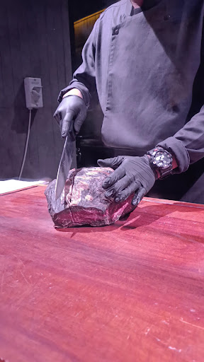 Ambience The concept of this steakhouse is very well thought. Imagine you're dining in a gold mine inspired by Indiana Jones. You will enter this intricately designed tunnel that lead you to the golden lighted main chamber. The dining area is spacious, the bar is beautiful, they have this open kitchen where you can see the food preparation. But do not worry, the exhaust system is working properly so you won't smell like Smoke while you are dining in. They also have this meat room where you can see how they prepare the meat, and dry age meat storage room. They also have private rooms and smoking room where you can also dine in. The temperature here is nice, I am comfortable here.