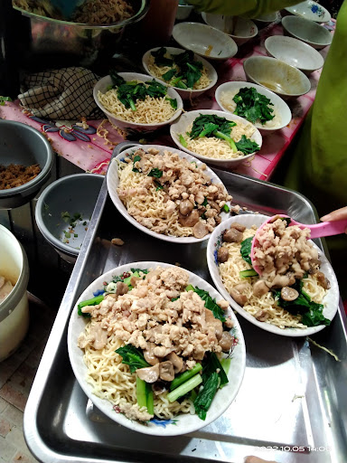 Read moreWarung mie ayam ini heboh banget. Hari minggu pagi datang ke warung ini situasinya ramai banget. Banyak yang harus antri sampai ke jalan depan warung. Warungnya memang tidak besar. Hanya menempati teras rumah yang tidak seberapa luas juga. Hanya ada beberapa meja dan kursi saja. Jadinya gak bisa muat banyak tamu sekaligus. Itu pun harus makan berhimpitan dan cepat-cepat karena banyak yang menunggu gantian pakai mejanya. Karena itu yang beli juga kebanyakan lebih memilih untuk dibungkus dan makan di rumah. Beberapa pembeli yang saya lihat, sampai memesan lebih dari 10 porsi mie ayam dibungkus bawa pulang. Porsi mie ayam di warung ini memang gak kira-kira. Semangkok penuh menggunung sampai tumpah-tumpah toping ayamnya. Begitu banyaknya porsi dalam satu mangkok, sampai saya tidak sanggup menghabiskannya. Padahal satu porsi sudah saya bagi dua. Jadi saya hanya makan separo porsi itu pun tidak habis. Separo sisanya saya minta dibungkus dibawa pulang. Satu porsinya memang bisa untuk konsumsi dua orang. Mungkin ini salah satu daya tarik utama warung ini, sehingga selalu ramai pembelinya dan rela antri sampai ke jalan depan. Kelebihan lain warung ini adalah harganya yang murah. Semangkok mie ayam porsi menggunung tanpa tambahan bakso, dibanderol hanya Rp20k. Kalo pakai tambahan bakso harganya jadi Rp25k. Kalo seporsi mie ayam dengan bakso untuk dimakan berdua, berarti seorangnya hanya perlu bayar Rp12.500,- saja. Meskipun ukuran porsinya brutal dan harganya murah, rasa mie ayamnya tetap bisa diadu. Cita rasa mie ayamnya tidak mengecewakan. Rasanya tipe mie ayam yang asin gurih. Jadi bukan mie ayam yang manis seperti kebanyakan mie ayam lainnya. Kuah mie dan bakso yang disajikan di mangkok terpisah juga sangat kuat aroma dan rasa kaldu ayamnya. Kuahnya bukan cuma berisi air saja, tetapi juga ada balungan dan tetelan daging ayamnya. Pelayanannya juga cukup cepat. Begitu dapat meja, langsung pesan. Tidak lama menunggu, mie ayam pesanan sudah datang siap disantap. Kalau makan mie ayam di warung ini, harus benar-benar siap perut kosong, atau minta tambahan 1 mangkok kosong untuk membagi 2 mienya. Yang satu bagian minta dibungkus saja untuk dimakan dirumah. Selain itu juga perlu lebih sabar saat makan, karena tempat sempit ada resiko tersenggol atau terhimpit badan tamu sebelah. Juga sebaiknya tidak bawa mobil atau naik taksi saja. Karena jalanannya sempit dan tidak ada...