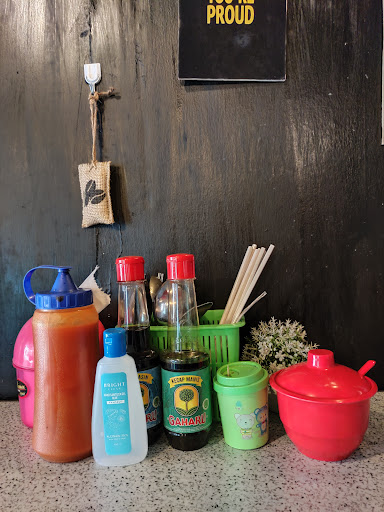 Selain tertata rapi, tempatnya juga bersih. Printilan kelengkapan makan mie ayam (saus, kecap asin, kecap manis, sambal, alat makan) pun komplit. Ada pula tisu, tusuk gigi, dan yang terpenting ada hand sanitizer!