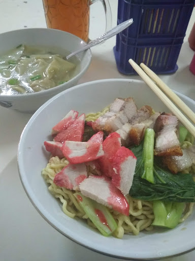 Bakmi Ayam Kampung + Swikiaw Babi (Gang, Pengkolan) Udah dua kali ke sini buat makan mienya, bukan karena doyan, lebih ke penasaran karena pertama kali makan, rasanya biasa aja, malah yang paling keinget malah jamur merang-nya yang agak masam. Untuk swikiaw babi cukup padat dagingnya dan berasa udang. Kali kedua nyoba yang di pengkolan, kali ini jamurnya gak masam, tetapi terlihat lebih dipotong tipis dan gelap (dikecapin), tetapi untuk bakminya masih tergolong kurang berkesan. Untuk mie yang menggunakan potongan ayam kampung, masih condong lebih ke asin yang lebih kuat daripada rasa gurihnya. Potongan mienya agak besar, tetapi yang bikin pengalaman makannya agak absurd adalah mienya putus-putus, jadi gak berasa ada kontinuitas, serasa makan locupan versi kecil dan lebih panjang. Mengingat harganya 11-12 dengan mie ayam kampung yang lebih proper seperti Bakmi Karet Krekot yang kaldu dan bumbu mienya lebih berkarakter, rasanya kecil kansnya bakal kembali ke sini untuk makan mie Soen Yoe untuk ketiga kalinya.