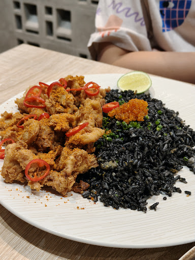 Black Squid Ink Fried Rice A striking plate of jet-black rice studded with spicy, chewy squid bits. The flavor is subtle at first—then layers of garlic, chili, and ocean brininess hit you. It’s playful yet comforting, and definitely worth ordering.