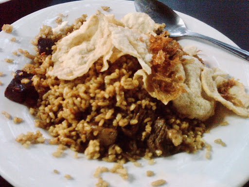 What makes it truly special is the distinctive spice blendâa fragrant mix of Middle Eastern and local Indonesian influences. The rice is stir-fried over high heat with tender chunks of kambing (goat), infused with bold notes of cardamom, clove, coriander, and a whisper of curry. It's not greasy, not overly sweetâjust perfectly balanced, smoky, and savory.