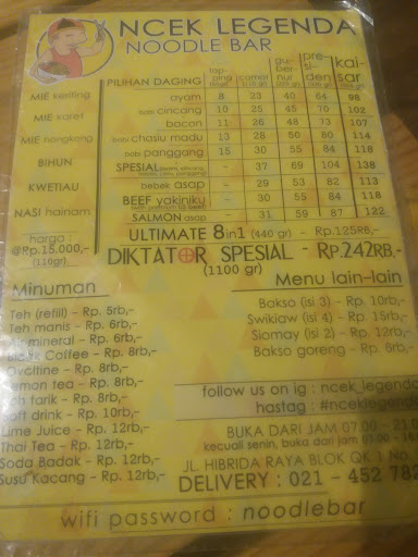 I finally tried the infamous Ncek Legenda, a long-standing noodle shop that truly lives up to its "Legend" status! We went on a busy weekend morning, and the place was absolutely packed. We had to wait in the seating area for about 30 minutes before we finally got a tableβso patience is key! While waiting, we ordered a snack: the Fried Meatball. Honestly, the taste was pretty average; the mix felt about 1:1 flour to meat, which made it feel a bit expensive for what it was. However, everything changed once our main order arrived: the President Portion of Crispy Pork Belly (330g Meat) with Chewy (Karet) Noodle. The portion was absolutely hugeβwe were amazed we managed to demolish the entire thing! The Pork Belly was the real star: incredibly crispy, tender, and filled with juicy fat. The Karet noodles were perfectly chewy and well-seasoned. Given the sheer amount of fat and oil from the meat, the accompanying soup was a necessary and welcome relief to balance the richness. Overall, the place is great. Despite being a little cramped (and someone accidentally spilling a drink near me!), the staff were quick and responsive, cleaning the area immediately, which was a huge plus for service. The price may be a little steep, but the huge portion and quality justify the "legend" status. Plus, they sometimes offer student discounts, so keep an eye out! Highly recommend for a truly massive and...