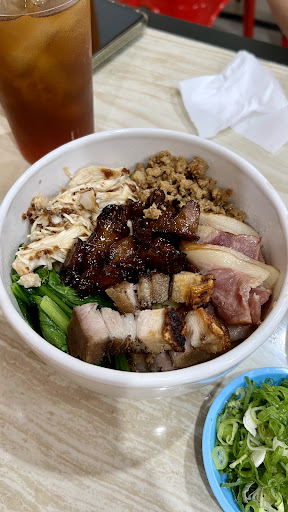 Mie spesial camat ⭐️⭐️⭐️⭐️⭐️: mie keriting kenyal, pakai semua topping yang ada. Kuahnya juga gurih banget enak. Mienya gurih kenyal pas, dagingnya semua enak. Babi cincang enak, chasiu mantap manisnya, bapang asin kriuk, ayam rebusnya gurih, bacon gurih wanginya strong. Tapi kalo makan dicampur jujur ada yg nabrak rasanya. Topping sangat banyak, bahkan sampai mie sudah habis, dagingnya msh sisa banyak. Mee pok ⭐️⭐️: mie lebar kenyal, topping standar mee pok. Mienya menurutku terlalu tebal (tebalnya hampir sama dgn mie keritingnya), jadinya berasa heavy bgt. Jujur mee poknya kurang sih rasanya, i expect pakai bumbu chili oil, tp kyny ga ada rasa chili oilnya. Daging cincangnya enak, tp suikiaw dan baso2annya biasa banget. Condiment : daun bawang & bawang putih goreng. Dikasihnya mantep banyak bgt, tp bawang putih gorengnya ga enak terlalu keras. Jadinya malah ngerusak rasa juga krn terlalu strong.