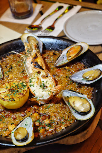 Paella de Mariscos (Paella rice served with king prawn, green mussels cooked in saffron and seafood broth) It was served beautifully on a hot plate. Paella rice taste pretty good and cooked well. It was quite fishy but still okay. Topping was generous. Dont forget to squeeze the lemon to get richer taste.