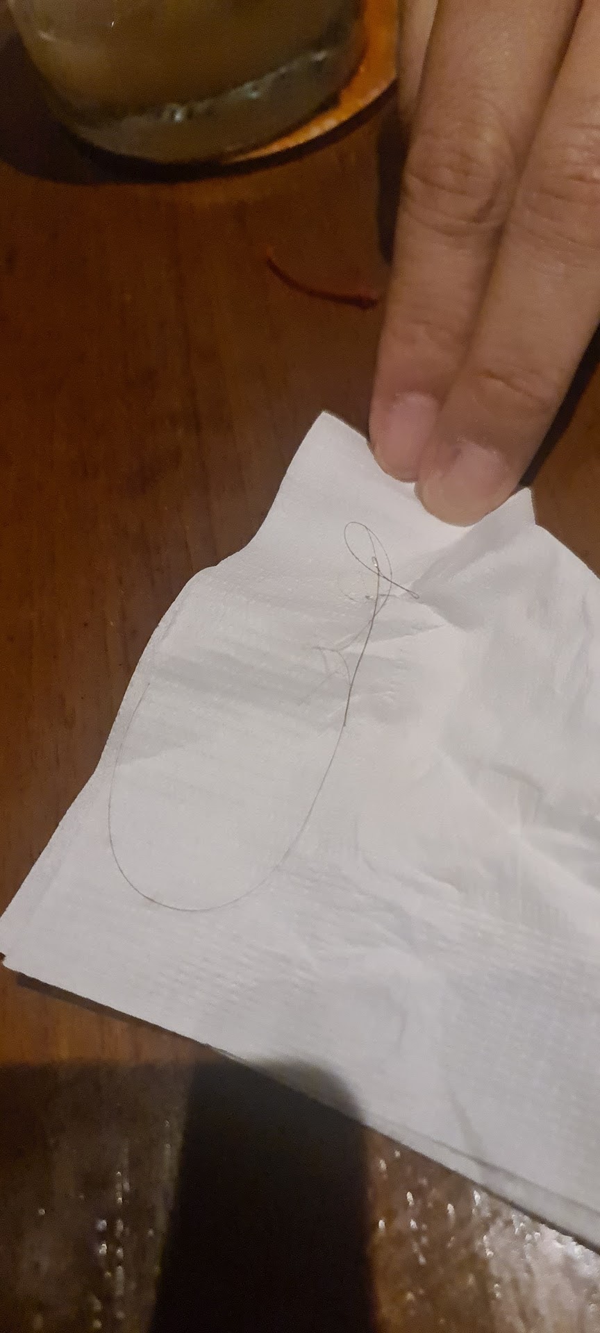 Yes, you reading it right. Ada RAMBUT didalam minuman saya dan lebih parah nya sempat masuk mulut saya. Saya pikir itu serat dari buah atau apapun. Rambut itu saya tarik dari mulut saya langsung saya taruh di tissue. Disaat saya tarik rambut dari mulut, suami belum sadar kejadian tersebut dengan sedang panggil pelayanan untuk minta Bill.