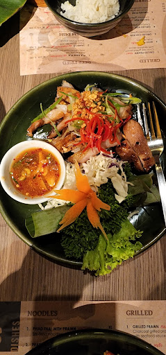 Read moreOne of the better non-halal Thai restaurants in Jakarta. Staff are friendly, responsive and attentive though they are busy. Lunch time on weekdays is quite packed. Food was delicious though some dishes are a little on the salty side. Green curry was good, there’s a selection of beef, chicken and pork. We had a green curry pork. Crab cake was alright, wish that it has more crab meat taste, and thinner batter. The prawn tom yum soup is good. Another dish we enjoyed is the brinjal with minced pork, it’s flavourful. If you like brinjal that’s not too soft, this would the kind of brinjal dish. And the pineapple fried rice was delicious. Butterfly pea drink was not overly sweet, but if there’s a choice to have it warm or hot, it would be great. Interior is refreshing with a hint of Thai...