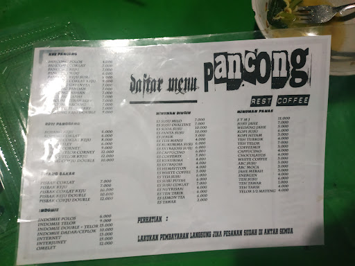 Awalnya saya ingin makan ditempat itu , saya memesan 3 minuman, 2 pancong, 1 indomie. Singkat cerita 1 jam menunggu pesanan saya 1pun belum datang, saya masih sabar dan coba pengertian mungkin antriannya banyak jadi wajar kalo lama, kemudian setelah 2 jam itu pesanan saya masih belum datang juga satupun, saya mulai geram karna sebelah2 saya pengunjung yg baru datang 15menitan minuman nya sudah diantar bahkan makanan nya juga, oke saya masih sabar! Di ke-3 jam minuman baru diantar 2 saja, saya sudah mulai kesal karna lagi lagi depan saya yg baru duduk beberapa menit makanan nya sudah datang lagi sedangkan saya 3 jam baru 2 minuman saja yg datang.
