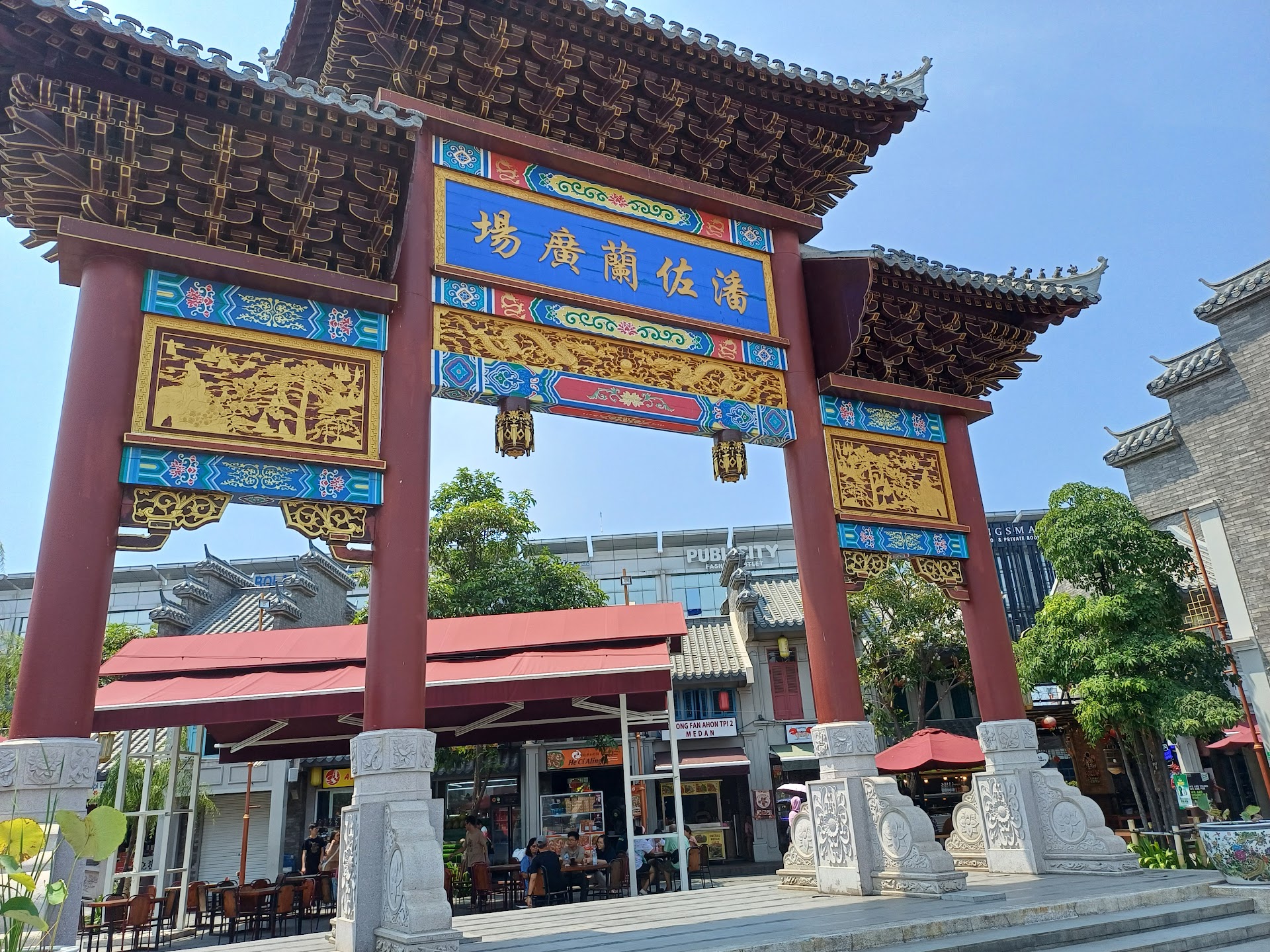 So i come visit here for only half an hour because i didn't even know it was existed and it is that great. Okay so the first thing i noticed from the place is theres a big structure that i didn't know what its called but it looked like a gate or something? Idk but it looks enormous and so cool, you could say this is my first time visiting this kinda themed building and i loved it. This looks like a small replica of a chinatown, i love every details on it from the color to the buildings they looked very unique and aesthetic, i didn't come visit for the food so i can't say much about food here but there are a few restaurants here and theres also a souvenir shop too! Its great for family gathering or hangout with friends, even though its a bit crowded when i visit because of valentine day but maybe it wont be as crowded on any other day. I could say definitely...