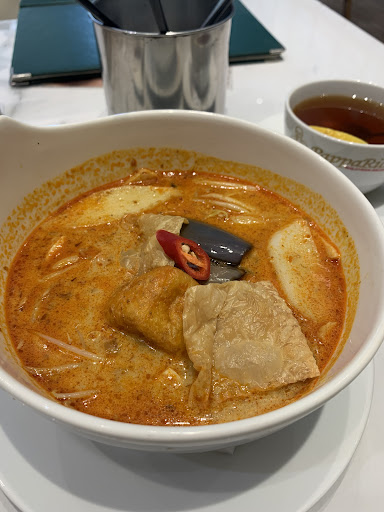 I had chicken curry laksa and hot lemon tea. Personally, I find the laksa is inedible. The soup is too spicy and too bold… as in too much MSG-bold. The spiciness makes my tongue numb to a point can’t even taste the other aromatics. I almost ask the waiter to get me still water to tone down the soup.