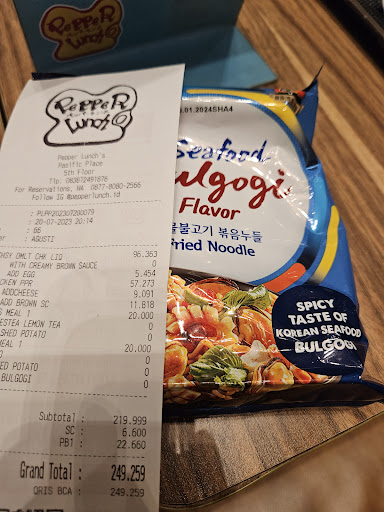 Read moreHari ini kebetulan banget bisa mampir ke Pepper Lunch cabang Pacific Place, Jakarta Selatan nih. Kalau dari tampilan sih tidak jauh beda dengan cabang-cabang lain, ya namanya juga restaurant waralaba yah.