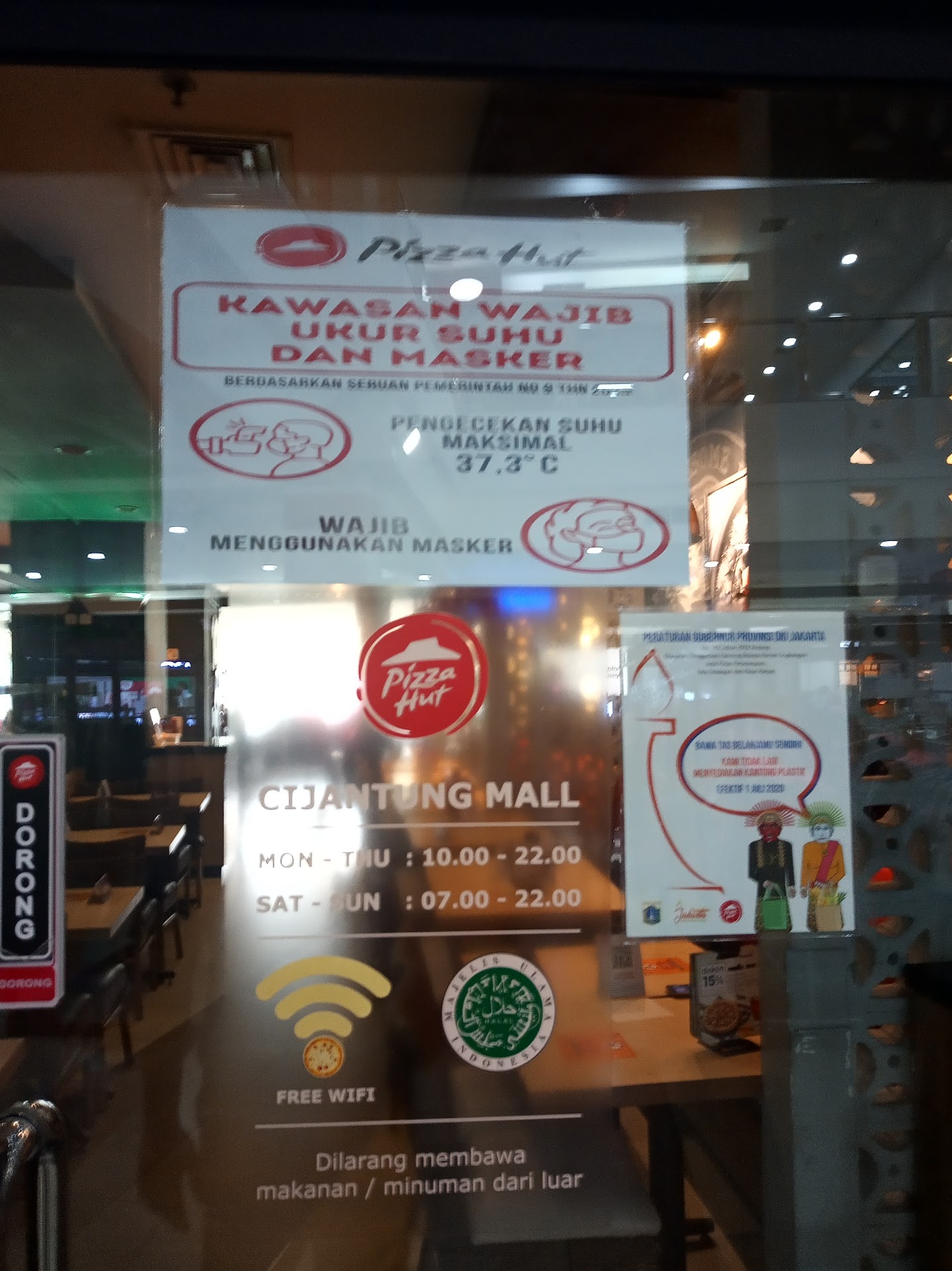 wow generally I like this. the service is good. I kind of notice the employees of Pizza Hut are tall. probably that's one of the requirements to be one. oh yeah...the food is great...just like other pizza hut branches. the differences usually comes from the table. When I enter the place. the door is quite small. there's another way from outside. Maybe there's a little space there make arrow for wastafel location will disturb the taste. at Sep 2023, there's a broken tap and broken hand dryer. in the left side. So customer surround the tap.