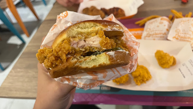 I ordered Spicy chicken sandwich with onion rings, cajun fries and the berry ice cream thingy. The chicken barely has any flavor other than butter that I assume they put in the frying oil or idk, it tasted buttery. Pickles are good and definitely beat the flavor of the chicken, and the most important downfall is it is not spicy at all! The onion rings are flavorless and the batter hasn't fully cooked yet and the onion is too soft borderline mushy. And the ice cream... I get that they're trying to make something like McDonald's mcflurry but it melted too fast and too sweet. Also, Popeyes is more expensive compered to other fast food restaurants.