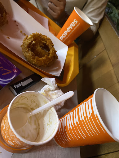 First of all, the location spot in google map is wrong, so I had to walk from wisma mandiri to skyline thamrin. Finally got to try popeyes in Indonesia today (thursday) around 1 pm, its on weekday after lunch time so it wasnt too crowded and there was no queue. Ordered 1pc classic chicken, buttermilk chicken fingers, popcorn cajun, cajun fries. Took about 10-15mins for my food to get ready so it was pretty quick. Seating place is super limited almost every seats are taken by office workers who were having lunch there. There is a table cleaner who try to clean tables too since indonesian doesnt have self-clearance/cleaning culture in food places (sad I know) though saw a man who clear up his table after eating so prop to him.