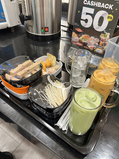 ย ย ย Read morePertama datang disambut dengan waiters nya, sangat ramah dan membantu aku, menjelaskan juga macam-macam dan menawarkan rekomendasi yang enak, beberapa minuman soldout dan disediakan free refill untuk es batu dan kuah. Untuk daging ayam nya lumayan fresh dan enak, sayuran nya juga fresh tapi untuk udon agak lembek banget dan berbau tidak enak, sosis nya masih fresh lalu untuk kuah tomyam nya agak asem banget di lidah ku. Ada 4 macam pilihan saus yang berbeda tapi untuk AC, padahal dekat dengan tempat duduk tapi ga dingin dan sangat panas sangat disayangkan untuk suasana yang...